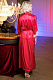 Длинный халат с широкими рукавами длиной ¾ выполнен из искусственного шелка рубинового цвета. Рукава халата декорированы по низу кружевом. Халат завязывается широким эффектным поясом, в боковых швах карманы.