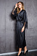 Длинный домашний женский халат из однотонного сатина. Т-образные рукава декорированы по низу тонким кружевом. Завязывается на пояс.