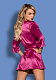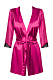 Коротенький халат с запахом и длинным пояском, который можно завязать бантом, выполнен из материала, тактильно и блеском напоминающего атлас. Рукава длиной 2/3 отделаны чёрным гипюром по краю. В комплекте аккуратные трусики-стринги. В комплекте: халат, трусики-стринги.