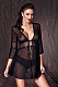 Роскошный пеньюар и трусики из деликатной эластичной сетки с кружевной вставкой, Рисунок кружева дублируется особым напылением. Двойная завязка-бант спереди. Летящий силуэт, расклешенные рукава 3/4. В комплекте: пеньюар, трусики-стринги.