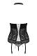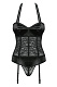 Шикарный корсаж смоделирует фигуру и подчеркнет ее женственность. Чашечки корсажа изготовлены из гладкой глянцевой ткани. Съемный эластичный ремешок через шею помогает удерживать корсаж. Зоны талии и живота украшены нежным кружевом. Низ выполнен из сатина. Сзади корсаж фиксируется при помощи шнуровки. Благодаря молнии в боковом шве слева, достаточно один раз отрегулировать корсаж по фигуре, не шнуруя его каждый раз. Съемные пажи позволяют носить корсаж как с чулками, так и без них. В комплекте: корсаж и трусики-стринги.