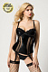 Корсаж с плотными чашками Candy Girl Serena визуально увеличит объем груди и добавит стройности силуэту благодаря продольным косточкам и регулируемым пажам. Сочетание эластичной сетки, ткани wetlook и кружева порадует любительниц интересных фактур. Регулируемые съемные бретели и многорядная застежка на спине обеспечат идеальную посадку. Стринги и чулки из крупной сетки с уплотненными мысками идеально дополнят образ. В комплекте: корсаж, трусики-стринги, чулки.