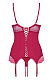 Элегантный женский корсаж, подчеркивающий фигуру. Предназначен для обладательниц пышного бюста. Чашечки на косточках с поролоном в нижней части поддерживают и приподнимают грудь. Узорчатое кружево в верхней части и ниже украшает эту модель. Между чашечками красуется атласный бантик. Сзади по всей длине атласная шнуровка. Низ корсажа украшен кружевной оборкой. Бретели и пажи для чулок регулируются по длине. В комплекте: корсаж и трусики-стринги.