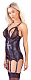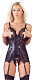 Соблазнительный корсаж из матовой ткани и кружев с регулируемыми бретелями и прорезными чашечками. Корсаж украшен кружевными вставками и декоративной шнуровкой. Вшитый пояс подчеркивает женственные изгибы. В комплект входят также стринги с вырезом. В комплекте: корсаж, трусики-стринги.