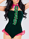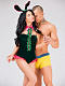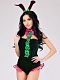 Когда рядом с мужчиной окажется такой очаровательный «зайка», тот гарантированно забудет обо всем на свете. Игривая «милашка» в бархатном боди, украшенном розовыми лентами и атласным жабо с «бриллиантовыми» пуговками, приведет в восторг кого угодно. Сочетание ярко-розового и изумрудно-зеленого цветов выглядят роскошно и притягательно. В комплекте: боди, воротник, головной убор.
