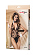 Костюм официантки. Боди из эластичной кружевной сетки с завязками на шее и застежкой на спине, снизу дополнено вставкой из материала wetlook. Воротничок из сатина на застежке- липучке декорирован контрастным бантом, манжеты - контрастными пуговицами-кнопками. В комплекте: : боди, воротник и манжеты.