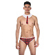 Костюм ученика для мужчин, состоящий из трусов-тонгов в клетку и из белого кружева, и красного клетчатого галстука с белым кружевным воротничком. В комплекте: трусы, воротник с галстуком.