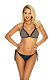 Стильный раздельный купальник Casablanca. Треугольные чашки со съемными вкладышами украшены вставками из ткани с мерцающим эффектом. Удобные завязки на шее и спине. Плавки с низкой линией талии на завязках. В комплекте: лиф, трусики.