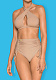 Экстравагантное бикини песчаного цвета. Высокие трусики-плавки с утягивающими завязками полностью прячут животик и визуально удлиняют ноги благодаря максимально высоким вырезам. Ягодицы остаются открытыми.