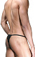 Мужские стринги, из двух видов ткани. Спереди - полупрозрачная тонкая мягкая ткань расцветки голубой леопард, а сзади - черное кружево.