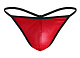 Красные трусы-стринги с черной окантовкой.