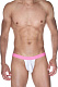 Мужские трусы-джоки на розовом поясе, с розовыми переплетенными широкими полосами-резинками на ягодицах и белым гладким гульфиком.