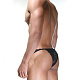 Мужские трусы-танга из черного кружева, с ярко-красной, гладкой вставкой спереди.