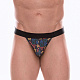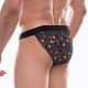 Темно-серые трусы-танга с разноцветным принтом в виде значков