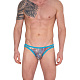 Трусы-тонги с разноцветным принтом и голубой окантовкой