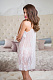 Изящная короткая комбинация полуприлегающего силуэта из необычного кружева. Изделие с V-образным вырезом горловины на полочке и разрезом капелька, который застегивается на навесные петли и пуговицы. Тонкие регулируемые бретели создают воздушный образ. Комбинация с подрезом под грудью и мягкой драпировкой на лифе, который выполнен из однотонного атласа. Подрез декорирован атласной лентой. Нижняя часть комбинации выполнена из ажурного кружева, что придает модели неповторимый образ.