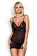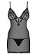 Полупрозрачная сорочка, зону декольте украшает атласный бантик с подвеской, в комплект входят трусики. В комплекте: сорочка, трусики-стринги.