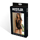 Сорочка из эластичной сетчатой ткани черного цвета. Глубокий вырез декольте расшит кружевом и украшен необычной шнуровкой. Завязывается на шее. Трусики-стринги идут в комплекте. В комплекте: сорочка, трусики-стринг.