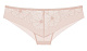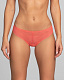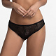 Трусы-бразилиана из полупрозрачного кружева с цветочным орнаментом. Тонкая и плоская резинка с краем пике по линии талии. Свободный кружевной край по линиям выреза бедер для легкости и незаметности под одеждой.