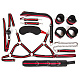 Черно-красный набор БДСМ: наручники, оковы, ошейник с поводком, кляп, маска, плеть, лиф