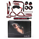 Великолепный набор аксессуаров для любителей БДСМ. В комплект входят наручники, оковы, ошейник с поводком, плеть, кляп, маска, лиф. Изделия имеют возможность регулирования размера. Плеть-флоггер состоит из хвостов и удобной рукоятки, снабжённой петлёй для подвешивания на крючок. Кляп оснащён шариком с отверстиями для дыхания. Наручники, оковы и ошейник снабжены специальной внутренней накладкой, предотвращающей натирание кожи. Набор упакован в большую красивую коробку.
