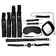 Черный текстильный набор БДСМ: наручники, оковы, ошейник с поводком, кляп, маска, плеть