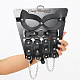 Маска «кошка» однослойная выполнена из натуральной кожи черного цвета и дополнена металлической фурнитурой высокого качества. Аксессуар плотно прилегает к лицу и хорошо фиксируется на любой обхват головы благодаря упругой широкой резинке.