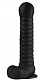 Черный рельефный фаллоимитатор с мошонкой - 27,5 см.