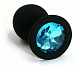 Черная силиконовая пробка с голубым стразом - 8 см.
