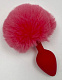 Красная анальная пробка с пушистым хвостиком зайки