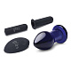 Синий стеклянный анальный вибратор с пультом ДУ - 9,5 см.
