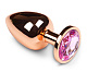 Большая золотистая анальная пробка с розовым кристаллом - 8,5 см.