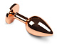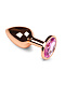 Маленькая золотистая анальная пробка с розовым кристаллом - 6 см.