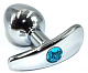 Серебристая анальная пробка для ношения из нержавеющей стали с голубым кристаллом - 8 см.