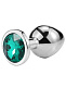 Серебристая анальная пробка iWonder c изумрудным кристаллом - 7,2 см.