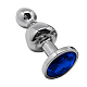 Серебристая анальная втулка Wooomy Lollypop M с синим кристаллом - 9,4 см.