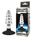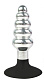 Серебристо-черная анальная пробка-елочка с круглым ограничителем - 10 см.