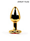 Золотистая анальная пробка с красным кристаллом - 9 см.