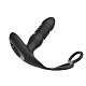 Черный анальный вибромассажёр с возвратно-поступательными движениями и кольцами для фиксации. 10 режимов возвратно-поступательных движений. Пульт дистанционного управления. Рабочая длина - 11,3 см.