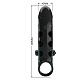 Черная вибронасадка на пенис с подхватом мошонки. Насадка удлиняет член, добавляет ему толщины. Обеспечивает партнёрше массаж клитора при глубоких проникновениях.