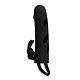 Чёрная насадка с клиторальным вибростимулятором и закрытой головкой - 14 см.