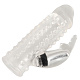 Насадка на пенис с клиторальным вибростимулятором Vibrating XTension with Clit-Rabbit. В отросток в форме зайчика вставляется вибропулька, которую можно использовать отдельно для стимуляции эрогенных зон. Длина полости - 13 см., диаметр - 3,2 см.