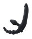 Чёрный безремневой страпон с вибрацией и анальным отростком