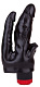 Этот вибромассажёр чёрного цвета, выполненный из упругого и приятного на ощупь поливинилхлорида, отличается от конкурентов своей многофункциональностью. По сути, это два вибратора, слившихся у основания и дополненных мяконькими лепестками для клиторальной стимуляции.