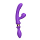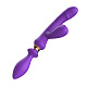 Фиолетовый двусторонний вибромассажёр с клиторальным отростком - 30 см.