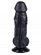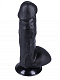 Черный вибратор-реалистик на присоске №5 с проводным пультом - 16 см.