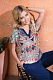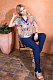 Великолепный комплект. Состоит из блузы и брюк. Блуза выполнена из вискозы с фантазийным принтом. Модель с цельновыкроенными короткими рукавами и фигурным низом. Круглый вырез горловины на полочке с V-образным разрезом, а также круглый вырез горловины спинки обработаны притачной обтачкой из однотонной вискозы, что является декором данной модели. По шву притачивания обтачки к горловине полочки и спинки заложена мягкая драпировка. Брюки с боковыми разрезами по низу и карманами в боковых швах, выполнены из однотонной вискозы. В комплекте: блузка, брюки.