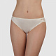Трусы-бразилианы классического кроя со средней посадкой. Фронтальная часть из гладкой шелковистой микрофибры сочетается со спинкой, выполненной из эластичного кружева с цветочным орнаментом. Кружево углом переходит на гладкую фронтальную панель, декорируя линию талии. Свободный край кружева по линии бедер не передавливает и делает трусы незаметными под одеждой.